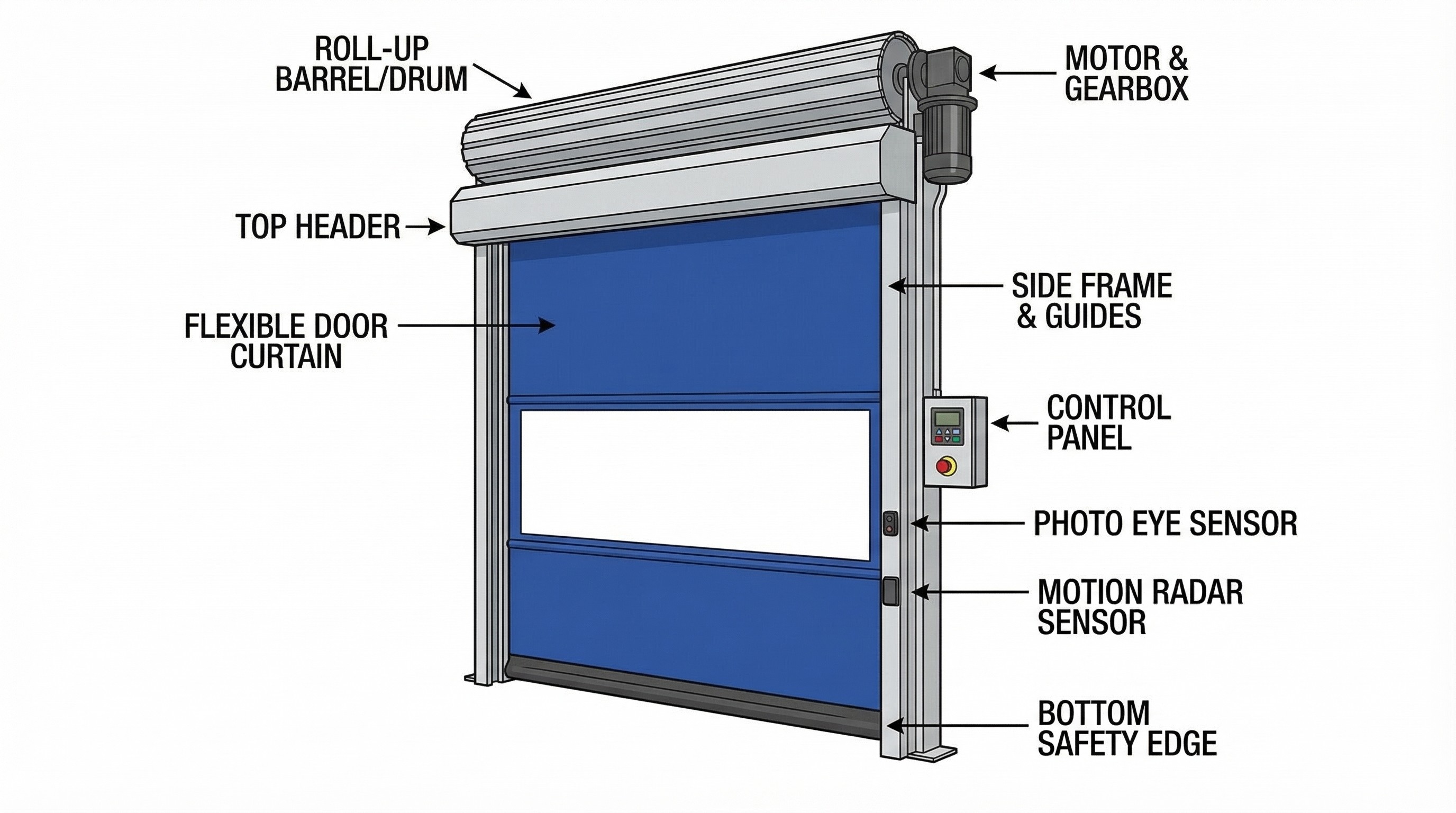 Every high speed door installation includes properly configured safety sensors and emergency stop systems – protecting personnel and preventing damage.